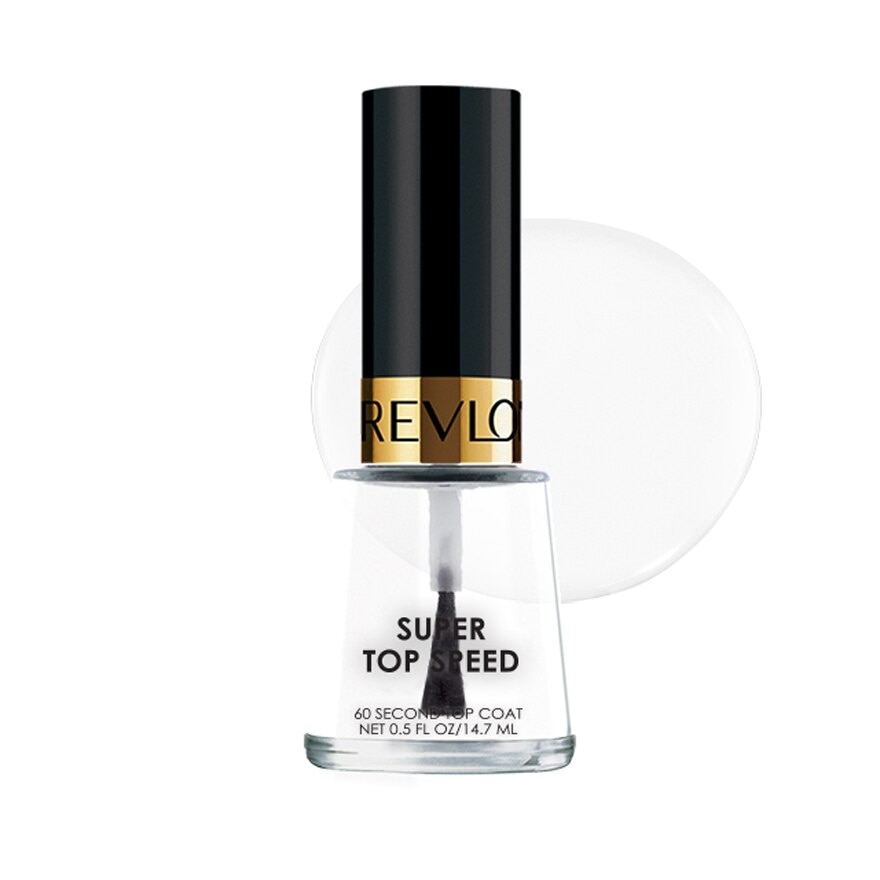 Revlon Super Top Speed 60 Second Top Coat. Seals in the color to prevent scratches and chipping. For a beautiful and shining finish to your nail color. Extend the life of your manicure. Meet your nail-color bodyguard: Our long-wear, no-chip top coat shields against nicks, delivers glass-like shine, and helps nail polish last. Apply one coat on top of your nail enamel. Seals in the color to prevent scratches and chipping. For a beautiful and shining finish to your nail color. Revlon Super Top Speed 60 Second Top Coat.