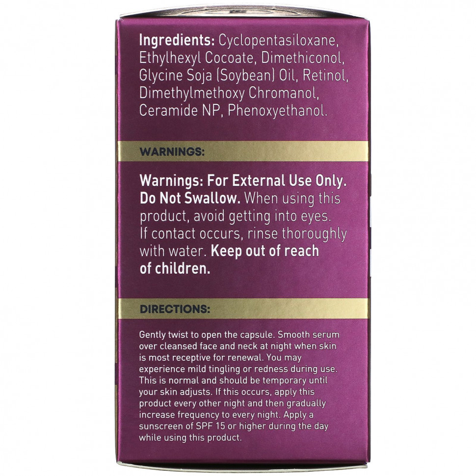 Наслаждайтесь мощным восстанавливающим действием на ночь, которое значительно разглаживает и улучшает внешний вид кожи, лишенной коллагена. Каждая капсула для разовой дозы плотно закрыта для сохранения свежести. Клинически доказано, что он оживляет кожу во время сна, заметно разглаживает мелкие и глубокие морщины и укрепляет кожу. Этот легкий флюид, содержащий высокую концентрацию чистого ретинола RoC® и антиоксидант биологического происхождения с вдвое большей эффективностью, чем витамин Е, увлажняет кожу и придает коже шелковистость. Каждая капсула на растительной основе полностью биоразлагаема. Протестировано дерматологами. Без отдушек.