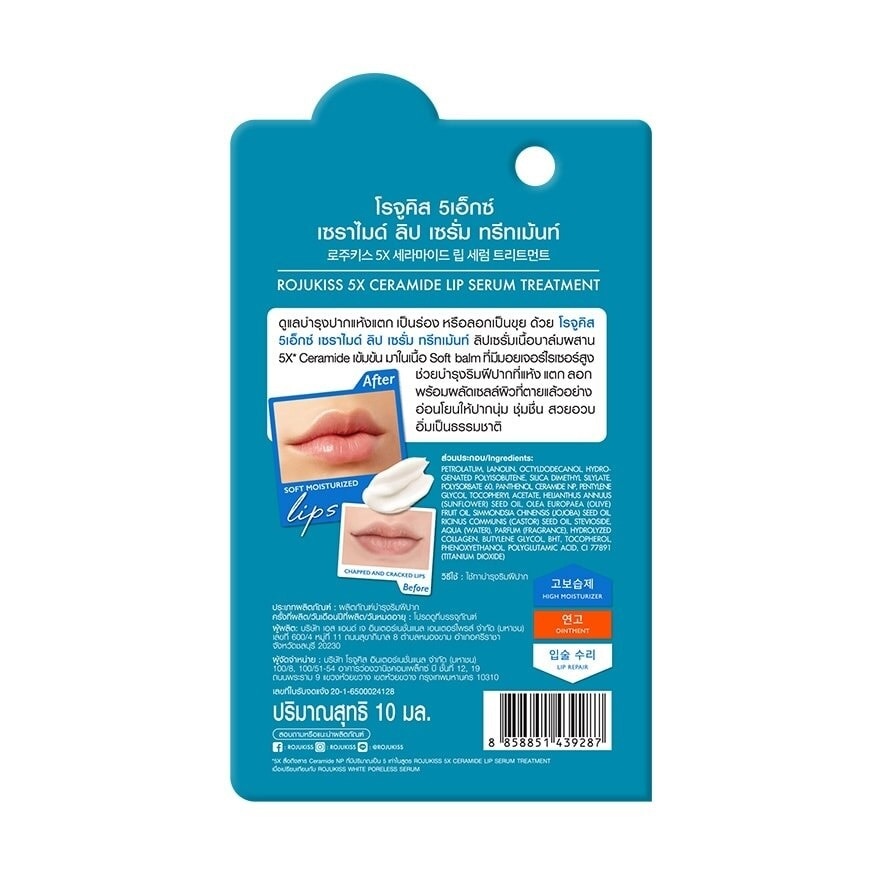 Rojukiss 5X Ceramide Lip Serum Treatment From our successful best-selling Rojukiss Sheet Mask with the first time of this lip serum from Korea. Say goodbye to dry, cracked and flaky lips with the newest Rojukiss 5X Ceramide Lip Serum Treatment. This new Korean lip serum comes with soft balm texture which is infused with 5X intensive ceramide that can be deeply moisturized and nourished your dry, cracked, and dull lips. Moreover, it gently exfoliates the dead skin and reveal your lips to be soft, smooth, and fully moisturized for everyday use
