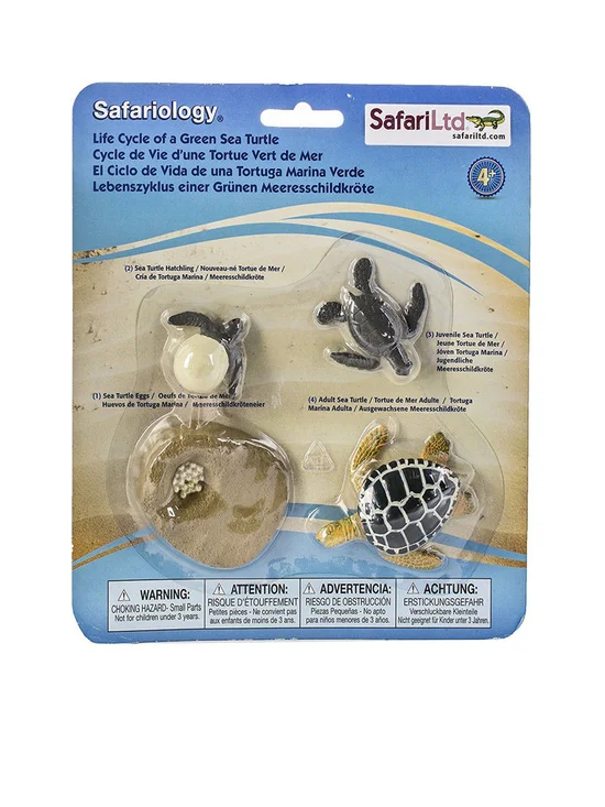 Life cycle of a green sea turtle from SAFARI comes in a set that includes the cycles. All figurines of SAFARI are phthalate and lead free, and adhere to worldwide testing standards. Each figurine is hand painted in order to capture the animal’s unique features. For using Toys that teach to educate children about the importance of nature and its conservation.