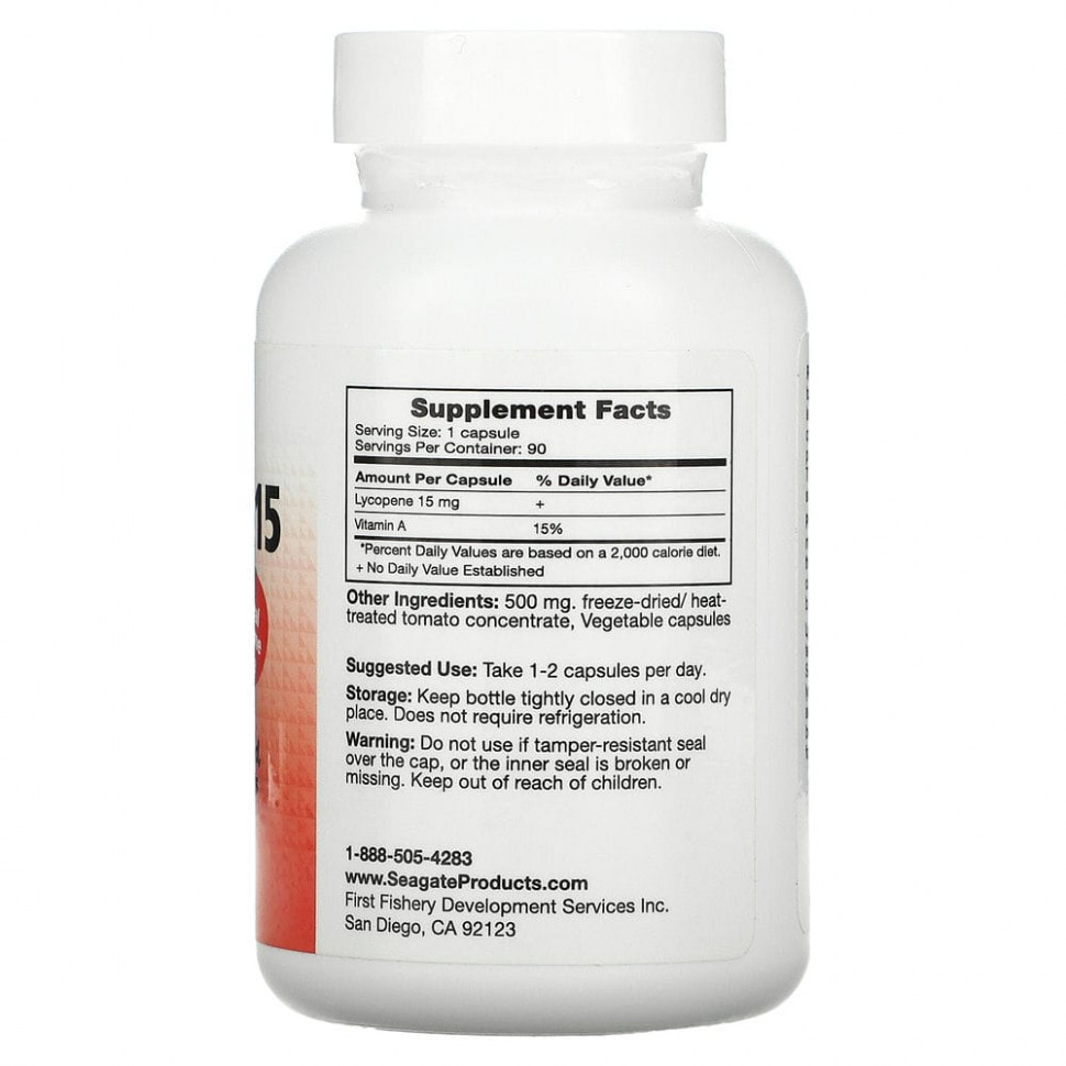 Ликопин: Каждая капсула по 500 мг содержит 3% ликопина, протестированного независимыми лабораториями с использованием УФ-методологии. Seagate избегает использования растворителей для концентрирования ликопина и, поэтому избегает присутствия остаточного этилацетата, который присутствует в капсулах многих ликопинов других марок. Этот продукт обеспечивает диетическую поддержку здоровья предстательной железы и шейки матки.