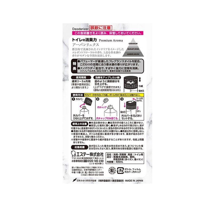 Shoshuriki Premium Aroma Modern series, the new scent of Shoshuriki Premium Aroma called Modern Series, is designed to look like a modern home interior decoration. Design is a stylish design. It gives the image of black and white leather of marble. To suit the look of a modern home interior. Product usage, for deodorizer in toilet. Product Warnings, read the warnings or recommendations on the label before use. Shaldan Fragrance for cleaning the air with techology from Japan. Shaldan Shoshuriki Premium Aroma Air Freshener.