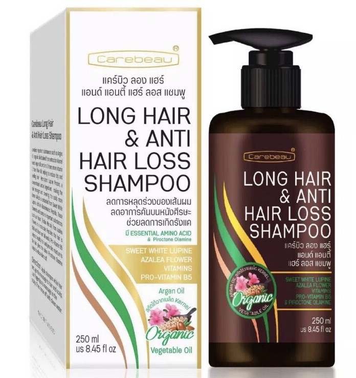 Органический шампунь для отращивания и предотвращения выпадения волос Long hair & anti hair loss shampoo Carebeau содержит экстракт сладкого белого люпина для стимуляции транспорта питательных веществ и кислорода. Гидролизованный белок в шампуне помогает увеличить продолжительность периода анагена, укрепить волосы, сделать плотнее и ингибировать фермент 5α-редуктазу II. Этот фермент вызывает выпадение и истончение волос, что приводит к облысению.