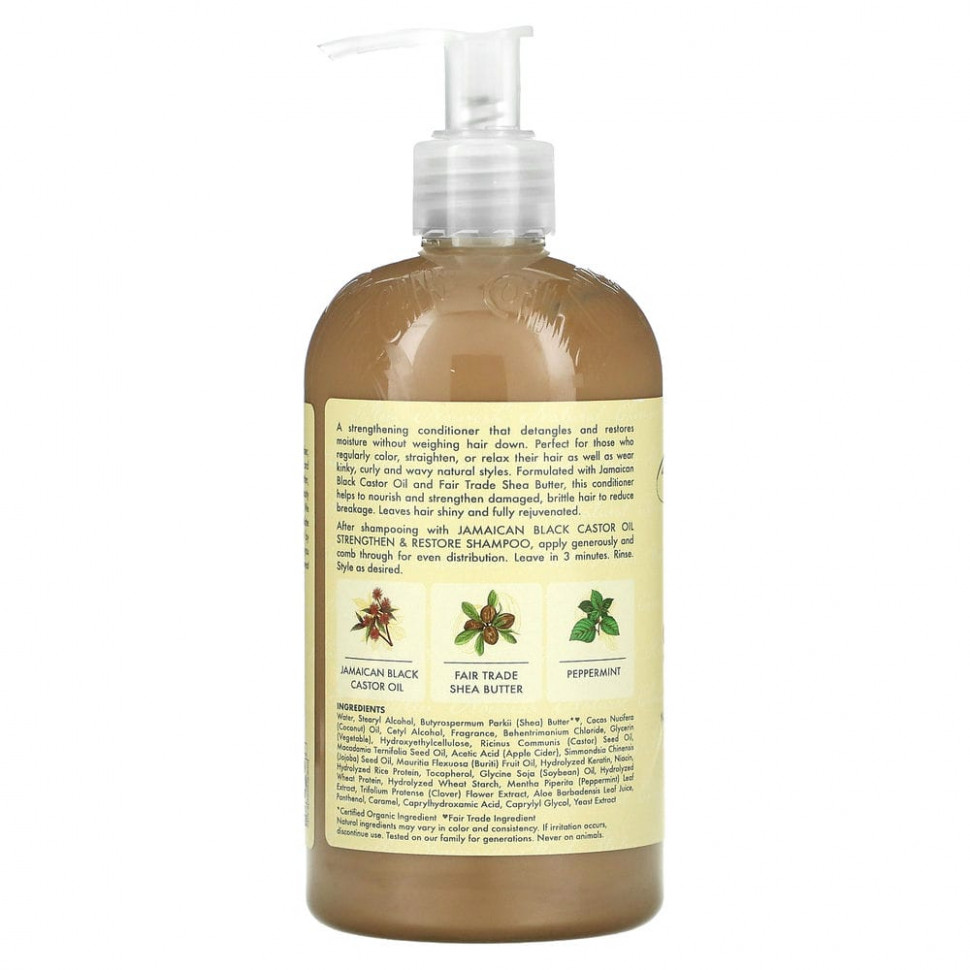 Укрепляющий кондиционер облегчает расчесывание и увлажняет, не утяжеляя волосы. Идеально подходит для тех, кто регулярно окрашивает, выпрямляет волосы или делает химическую завивку, а также для натуральных кудрявых, вьющихся и волнистых волос. Содержит ямайское черное касторовое масло и масло ши, приобретенные на основе принципов справедливой торговли, для питания кожи головы и укрепления поврежденных и ломких волос. Уменьшает ломкость и выпадение. Масло мяты перечной оживляет кожу головы, вызывая покалывание. Придает волосам блеск и обновляет их.
