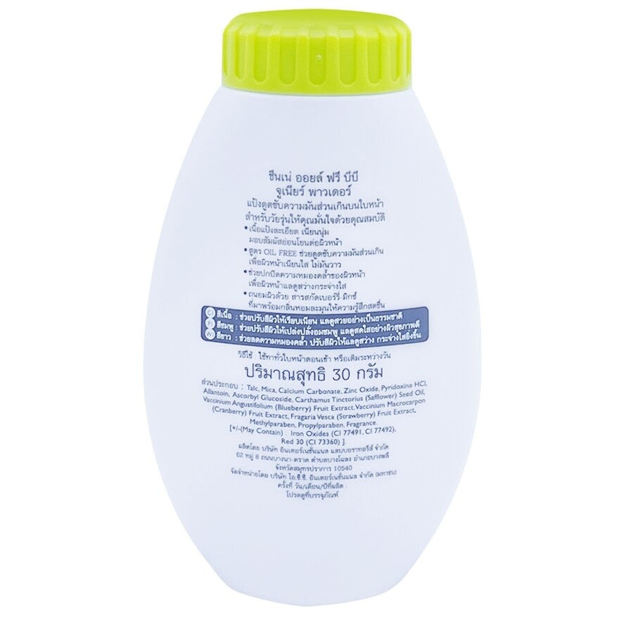 Sheene Oil Free BB Junior Powder 30g C1. This BB loose powder for teenagers absorbs excess oil on your face It makes you feel confident all day long A powder is fine soft smooth and gentle to the skin Oil free formula helps to absorb excess oil It helps conceal the dullness and make brighten skin Skin nourishing and moisturizng by Mixed Berry extract from Blueberry Cranberry and Strawberry Suitable for all skin types especially normal combination and oily skins Available in soft beige color that can be used for every color skin.