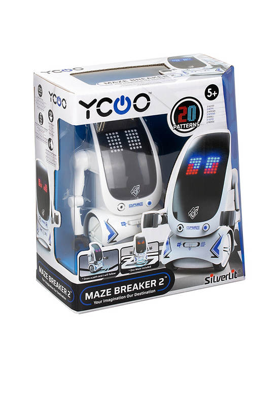 SILVERLIT YCOO Maze Breaker 2 interactive robot figure size 17 cm with 2-color LED matrix eyes (expression of emotions), sound effects, music playback and a special maze, route tracking and voice recording (robot sound effect) function.
