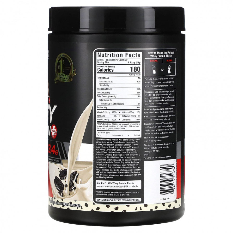 Six Star® 100% Whey Protein Plus is manufactured according to cGMP standards.