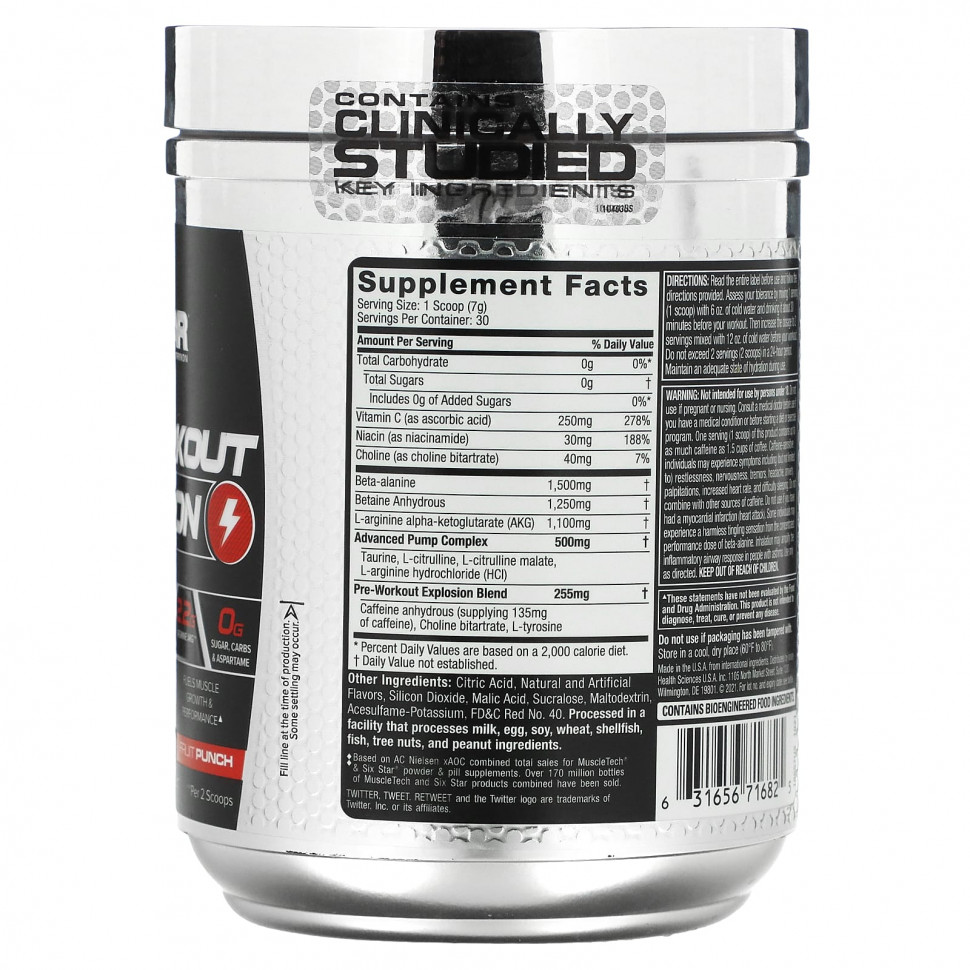 Six Star® Pre-Workout Explosion is from the makers of MuscleTech® so you know it’s a powerful formula you can trust. Whether it’s your first time at the gym or you’re a seasoned vet, pro athlete, or just trying to gain that extra edge in your sport, everyone is an athlete and every athlete needs to fuel their body with the best sports nutrition products available. Delivering sought after pre-workout ingredients for energy, focus, & intensity, Six Star Pre-Workout Explosion is the fuel you want before your workout for extreme energy, focus, and intensity — and it’s Engineered for All Athletes.