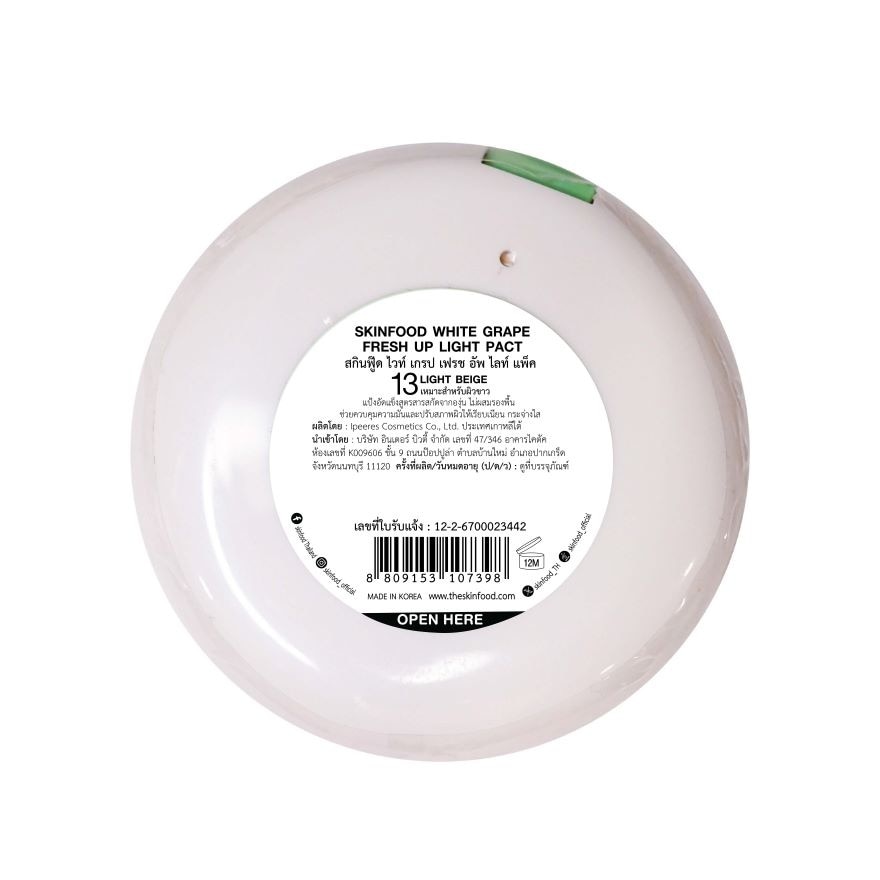 Compact powder formula with grape extract, with a lightweight texture that does not contain foundation, helps control excess oil while smoothing and brightening the skin, giving it a natural, fresh, and radiant look. Skinfood White Grape Fresh Up Light Pact 13 Light Beige Compact powder with grape extract that helps control excess oil and smooths and brightens the skin for a radiant complexion. Foundation-free. Compact powder formula with grape extract, with a lightweight texture that does not contain foundation, helps control excess oil while smoothing and brightening the skin, giving it a natural, fresh, and radiant look.