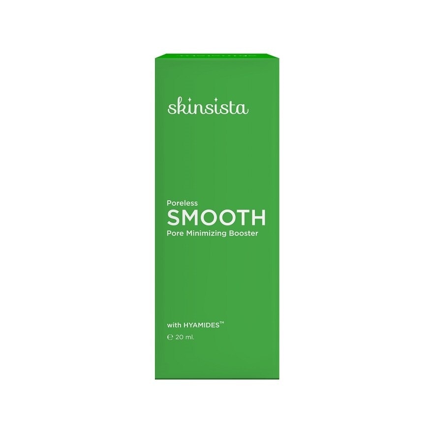 Skinsista Poreless Smooth Pore Minimizing Booster Intensive formula vitamin booster that combines up to 5.5 Percent. It helps reduce pores size, gently exfoliate skin, and thus, give smooth healthy skin look. It reduces excessive oil production, the root cause of clogged pores and acne. Enhancing skin barrier and adding skin moisture for healthier skin with Skinsista exclusive copyright active ingredient HYAMIDES. Developed and tested by dermatologists. — Dermatologist Tested — Specially formulated for sensitive skin — Developed and tested by SKIN Laboratory — Fragrance Free — Paraben Free — Silicone Free — Mineral Oil Free — Colorant Free — Non-Comedogenic