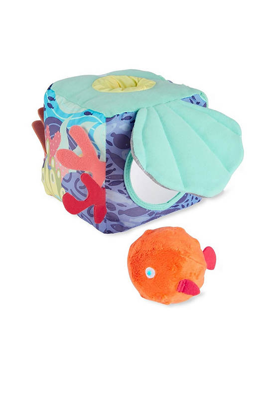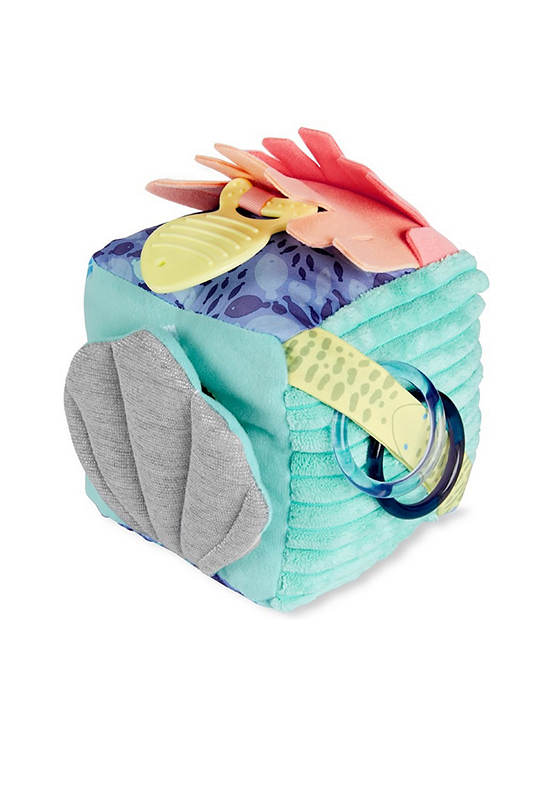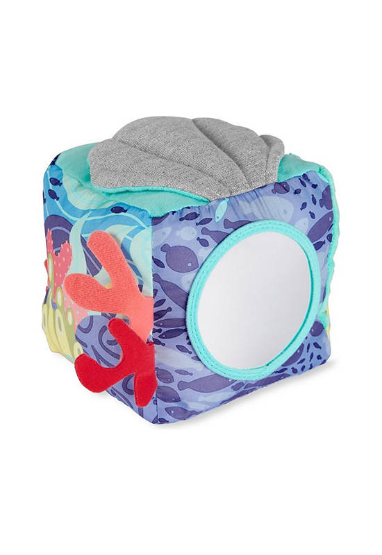 Dive into endless fun! Filled with multiple soft textures, crinkle sounds and more for baby to explore, our SKIP HOP sea-inspired soft activity cube encourages multi-sensory exploration at playtime. Featuring a peek-a-boo puffer fish rattle, crinkle shell with a baby mirror hidden underneath, a fish teether toy and lots more ocean treasures to discover.
