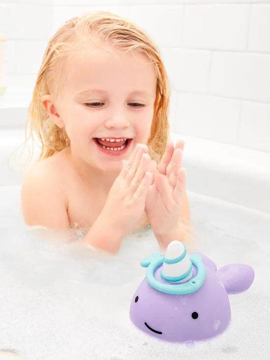 This SKIP HO tub time friend is ready to ring it on! Our adorable narwhal is all set for a game of catch with your little one. Just toss the rings onto its horn and score a splash of bathtime fun!