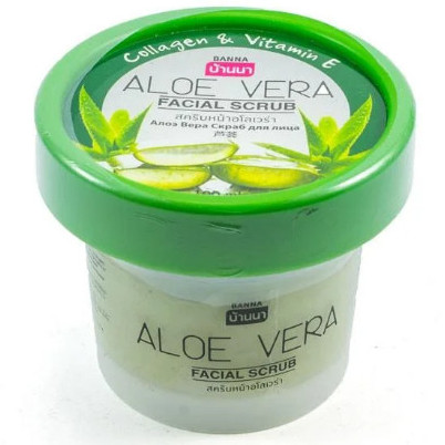 Скраб для лица Aloe Vera Facial Scrub Banna подходит для всех типов кожи: сок алоэ вера — универсально антибактериальное, увлажняющее и омолаживающее средство.