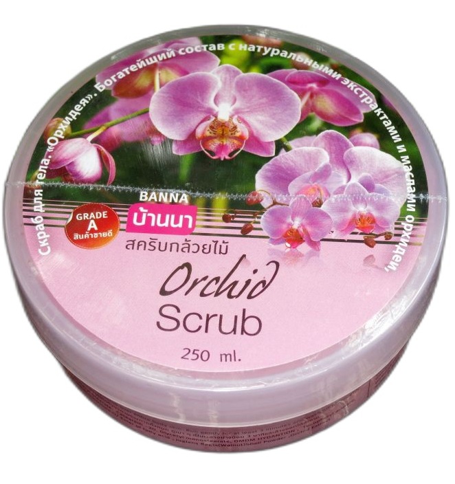 Крем-скраб для тела Banna "Орхидея" — это полностью натуральный органический питательный скраб для тела. Изготовлен на основе экстракта тропической орхидеи. Его сбалансированная формула обеспечивает деликатное удаление омертвевших клеток эпидермиса и вместе с тем полноценное питание поверхности кожи. Скраб эффективно очищает кожу от ороговевших клеток, активизирует обменные процессы, глубоко питает и великолепно увлажняет кожу, способствует сохранению водного баланса кожи, защищает кожу от пересыхания, обладает заживляющим и тонизирующим эффектом, способствует замедлению процессов старения кожи. Делает кожу мягкой, гладкой и эластичной.