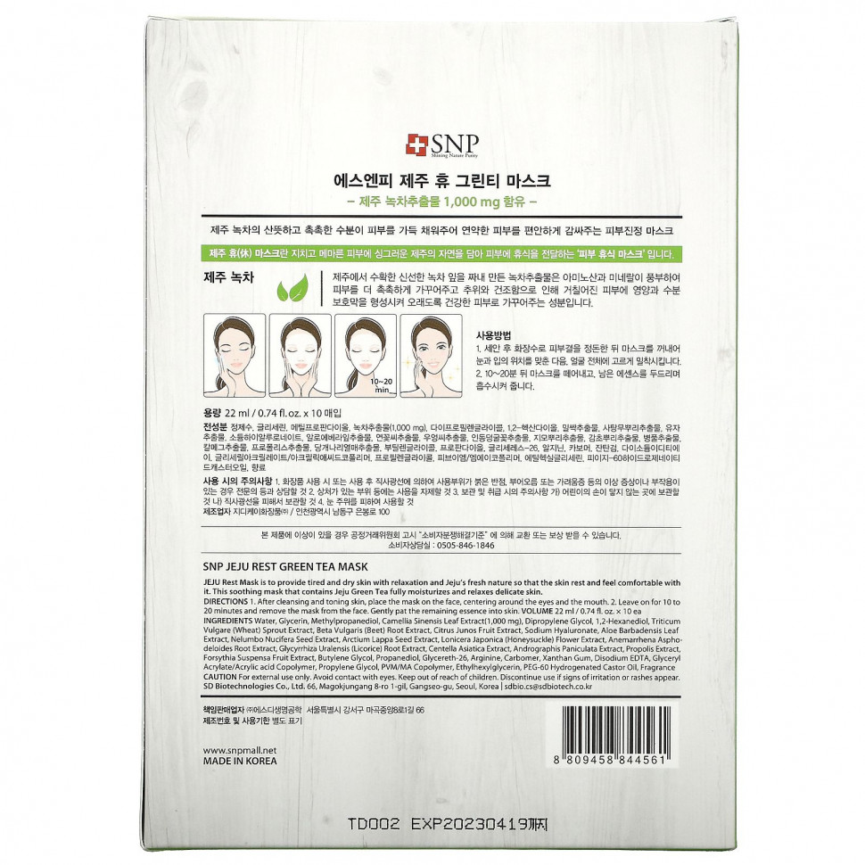 Эта успокаивающая маска с зеленым чаем Чеджу полностью увлажняет и расслабляет нежную кожу.