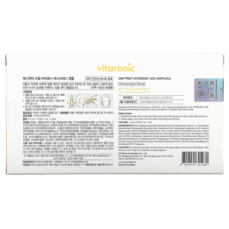 Ампула VITARONIC SOS, содержащая экстракты свежих фруктов, витамин С и 3 типа гиалуроновой кислоты, интенсивно увлажняет тусклую кожу, делая ее более яркой и свежей.