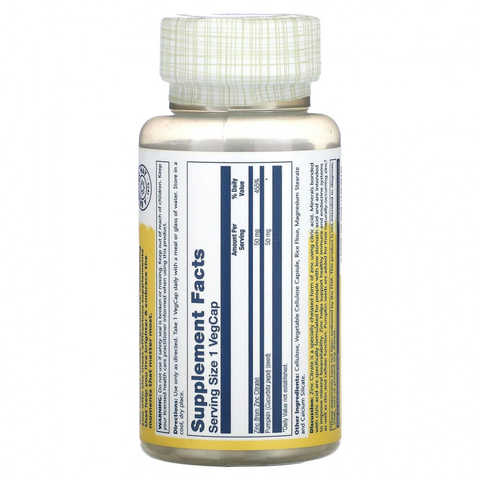 Описание. Цитрат цинка — это особая хелатная форма цинка, которая содержит лимонную кислоту. Минералы, связанные с лимонной кислотой, специально разработаны для людей с низким содержанием кислоты в желудке и предназначены для улучшения биодоступности минералов. Цинк помогает поддерживать нормальную работу иммунной и эндокринной системы, а также функцию кожи и клеток. Семена тыквы добавлены благодаря природному содержанию цинка.