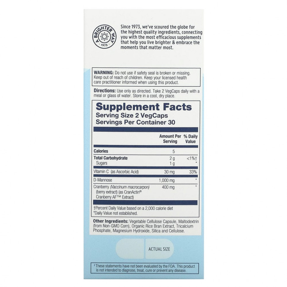 Комментарий: D-манноза — это натуральный сахар, который исследовали на предмет его способности поддерживать нормальные, здоровые мочевыводящие пути. Экстракт клюквы CranActin AF был добавлен для создания оптимальной бактериальной антиадгезивной формулы!