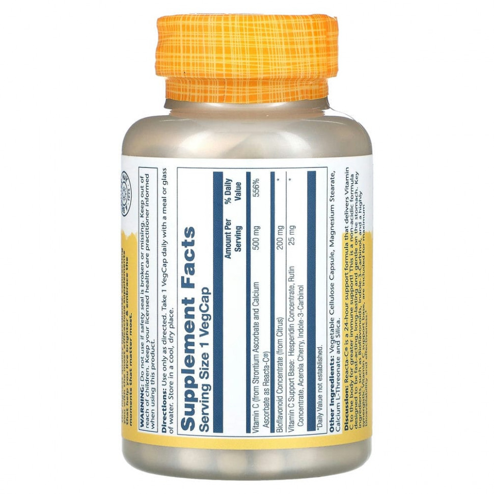Комментарий. Reacta-C — это клинически испытанная и запатентованная формула, которая обеспечивает круглосуточную поддержку, доставляет витамин С в организм на протяжении суток и сильнее укрепляет иммунитет! Этот комплекс аскорбата стронция и аскорбата кальция с L-треонатом представляет собой некислотную формулу, разработанную для быстрого действия и длительного действия, которая не вызывает проблем с желудком. Основные ингредиенты продукта, например, биофлавоноиды, индол-3-карбинол и витамин С, обеспечивающий базовую синергетическую поддержку, обеспечивают максимальную биодоступность и эффективность.