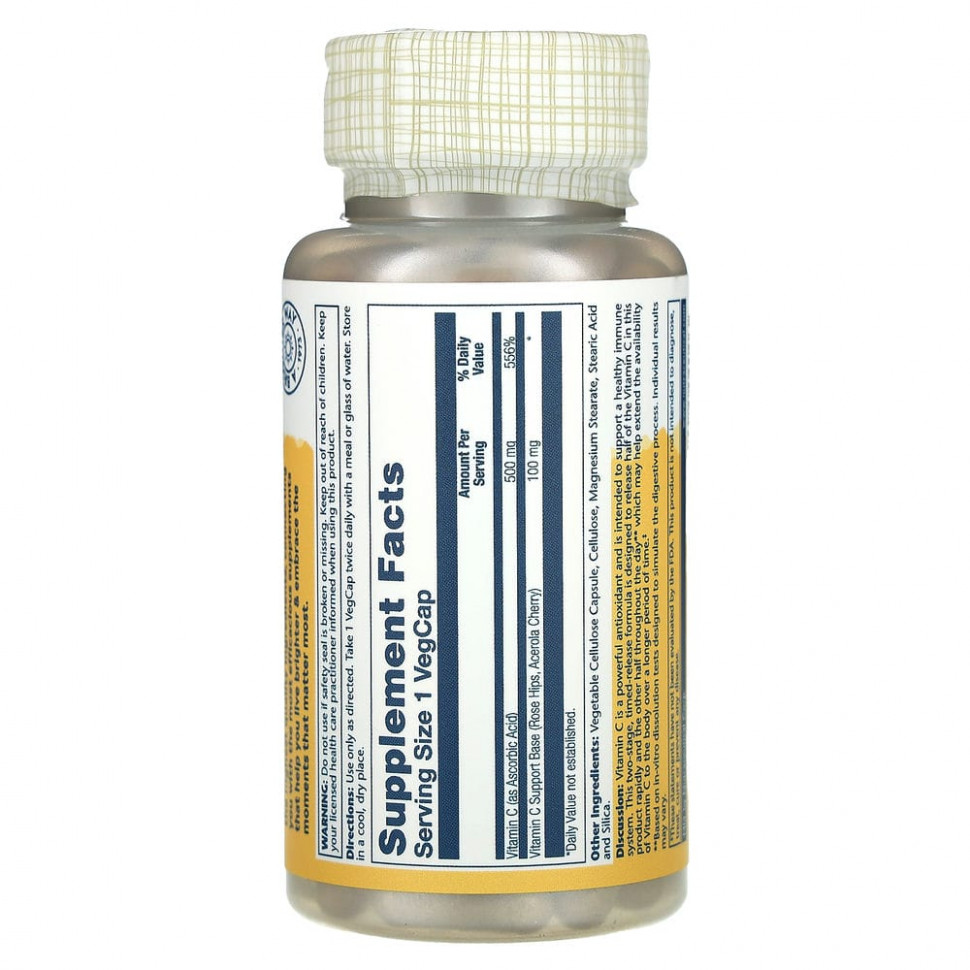 Обсуждение: витамин С обеспечивает антиоксидантную активность и предназначен для поддержания нормального, здорового синтеза коллагена, целостности капилляров и кровеносных сосудов, развития хрящей и костей, иммунной функции и передачи нервных импульсов. Эта двухэтапная формула пролонгированного действия, благодаря которой первая половина витамина С данного продукта высвобождается быстро, а другая постепенно в течение периода до 12 часов**. Это может помочь увеличить доступность витамина С для организма в течение более длительного периода времени.