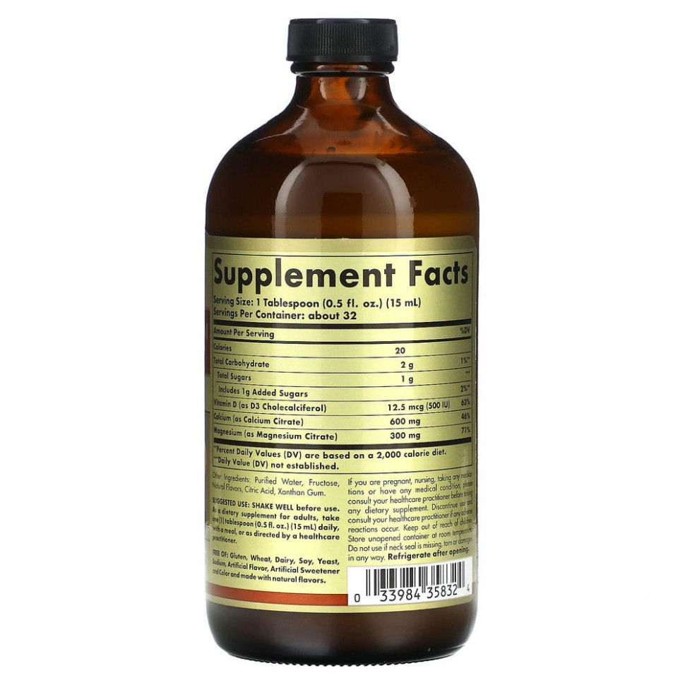Кальций представляет собой строительный материал, который помогает сохранить кости и зубы сильными и здоровыми. Он также поддерживает здоровье опорно-двигательного аппарата и нервной системы. Магний помогает регулировать перемещение кальция в организме и стимулирует секрецию кальцитонина, гормона, который способствует притоку кальция в костную ткань. Витамин D необходим для лучшего усвоения кальция, который отвечает за здоровье костей и зубов. Витамин D также поддерживает состояние иммунной системы. Данный препарат содержит кальций, магний и витамин D3 в виде вкусной и хорошо усваиваемой жидкости для ежедневной нутритивной поддержки.