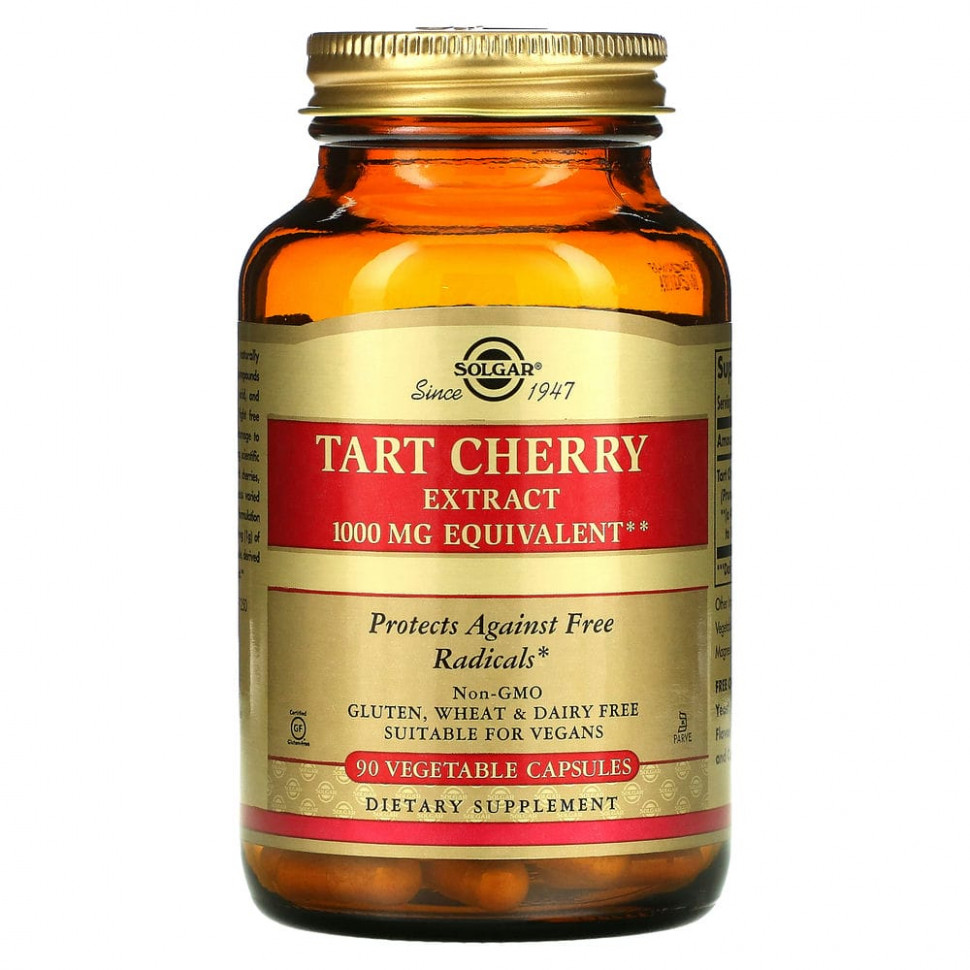Вишня (Prunus cerasus) естественным образом содержит полифенольные антиоксидантные соединения, такие как кверцетин, хлорогеновая кислота и антоцианы, помогающие бороться со свободными радикалами, которые вызывают окислительное повреждение клеток в нашем организме. Недавние научные исследования показывают, что богатая антиоксидантами вишня, в том числе терпкая вишня, может обладать разнообразными полезными для здоровья свойствами. Данный продукт содержит эквивалент 1000 мг (1 г) вишни в каждой растительной капсуле, полученной из экстракта высшего качества 4:1.