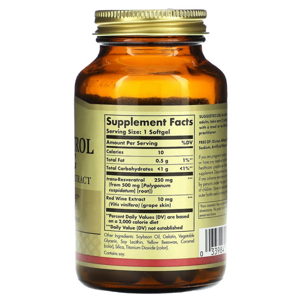 Ресвератрол — это натуральный полифенол, который содержится в красном вине, арахисе и некоторых растениях, в том числе в траве Polygonum cuspidatum. Это небольшая молекула, относящаяся к категории стильбенлов. Полифенолы, такие как ресвератрол, обладают мощными антиоксидантными свойствами, помогающими бороться в организме со свободными радикалами, повреждающими клетки и вызывающими оксидативный стресс. В свою очередь, данный стресс может способствовать преждевременному старению клеток. Каждая мягкая желатиновая капсула содержит больше ресвератрола, чем обычная бутылка красного вина.