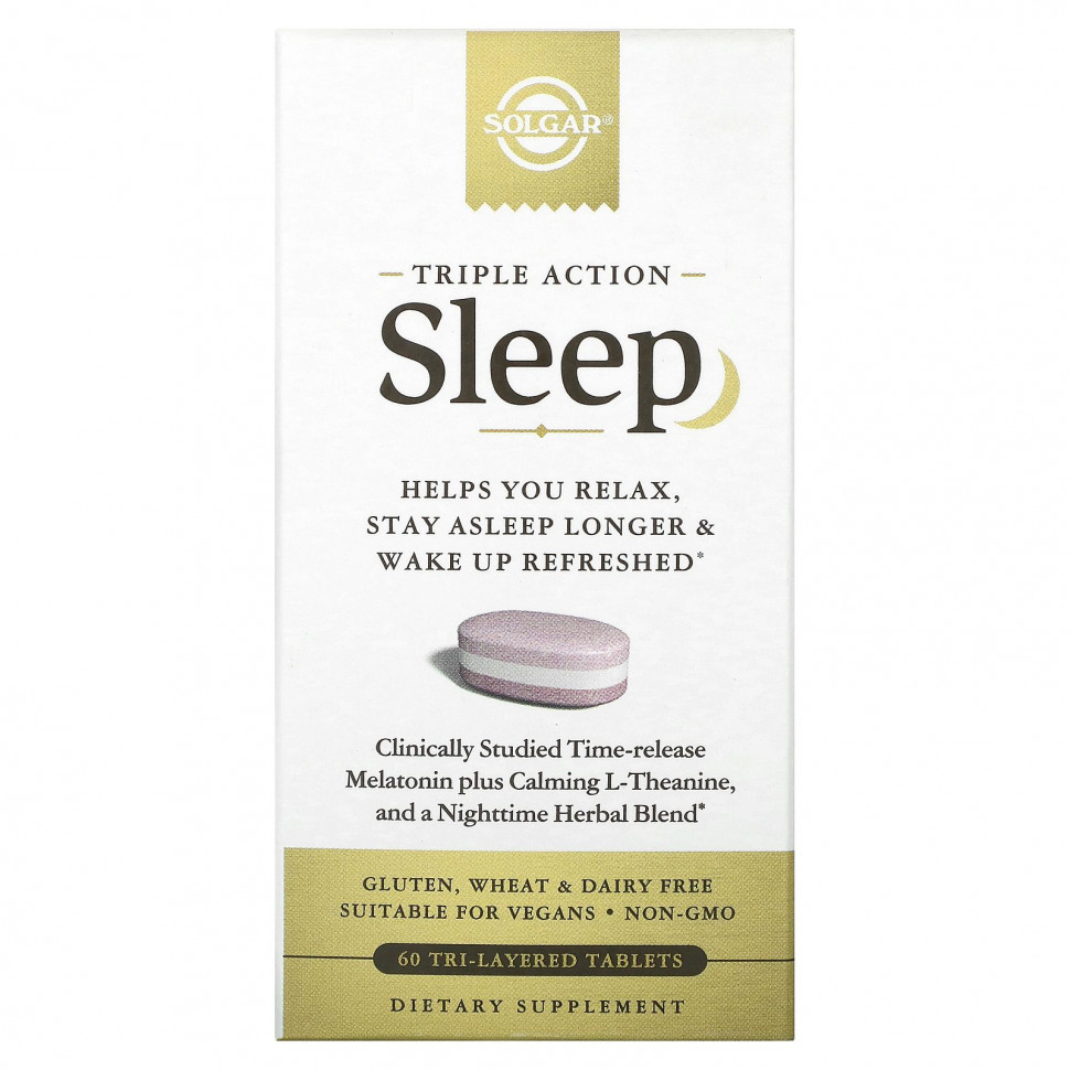 Solgar® Triple Action Sleep использует клинически изученную технологию замедленного высвобождения, которая позволяет каждому слою таблетки растворяться в разное время в течение ночи. Помогает расслабиться … Хорошо выспитесь … и просыпайтесь готовыми к новому дню!