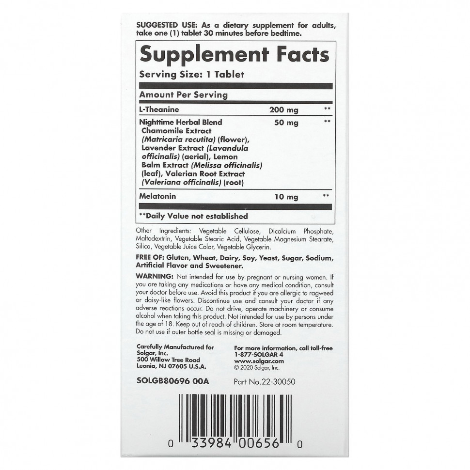 Клинически изученный мелатонин с замедленным высвобождением, успокаивающий l-теанин и ночная смесь трав