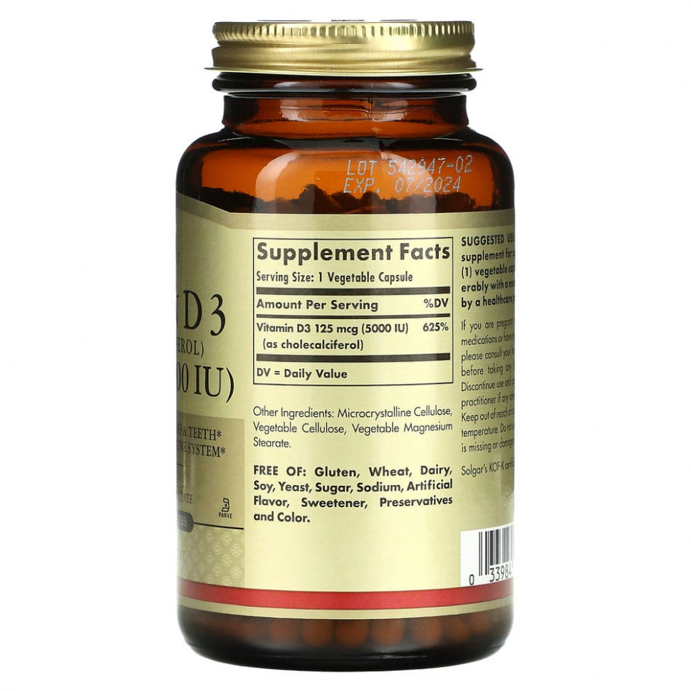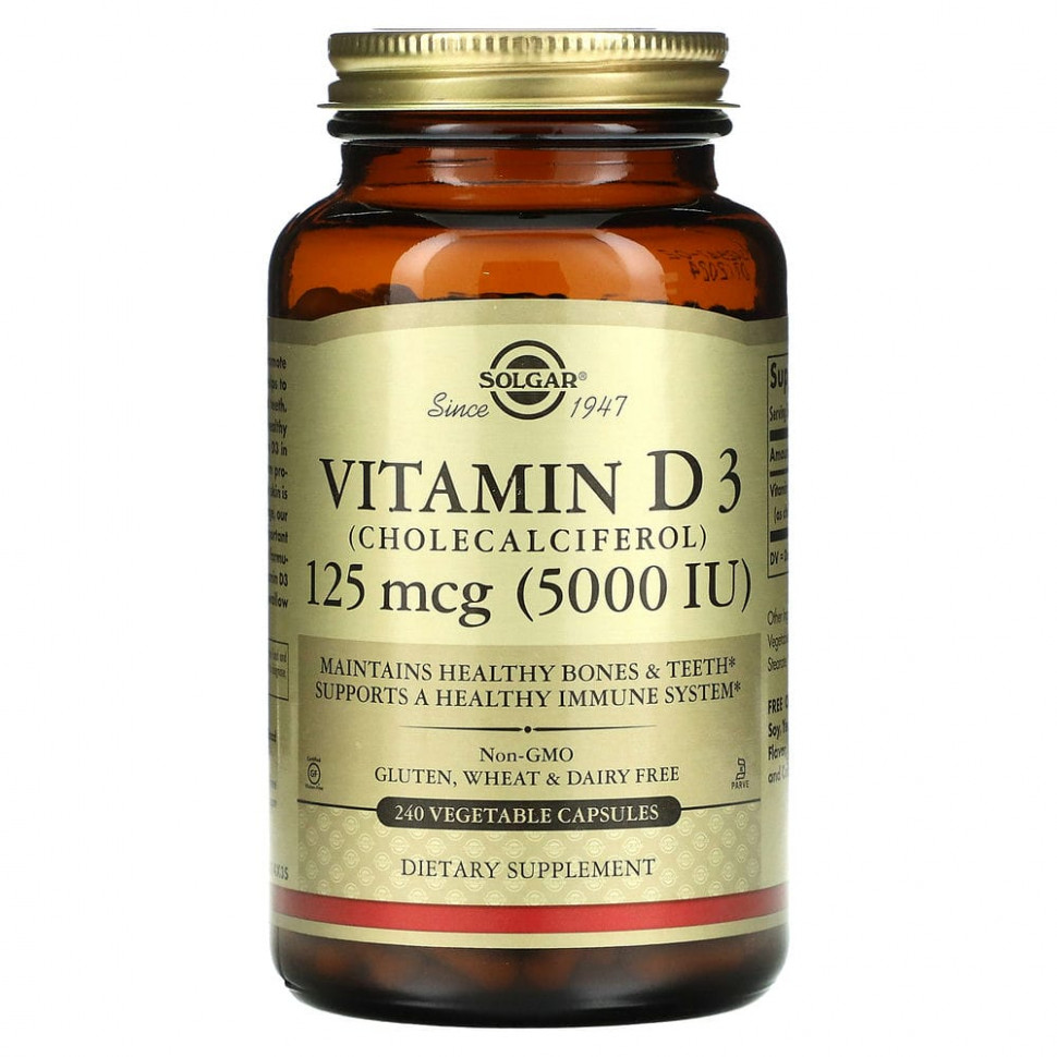 Витамин D необходим для усвоения кальция, который помогает поддерживать здоровье костей и зубов. Витамин D также способствует здоровью иммунной системы. Витамин D3 в этом продукте представляет собой ту же форму, которую организм вырабатывает, когда наша кожа подвергается воздействию солнечного света. С возрастом наш организм может менее эффективно вырабатывать это важное питательное вещество. Данная формула содержит витамин D3 премиального качества в удобных растительных капсулах, которые легко глотать.