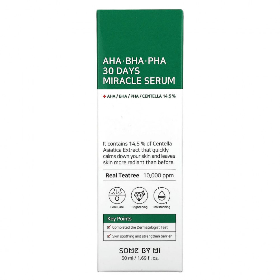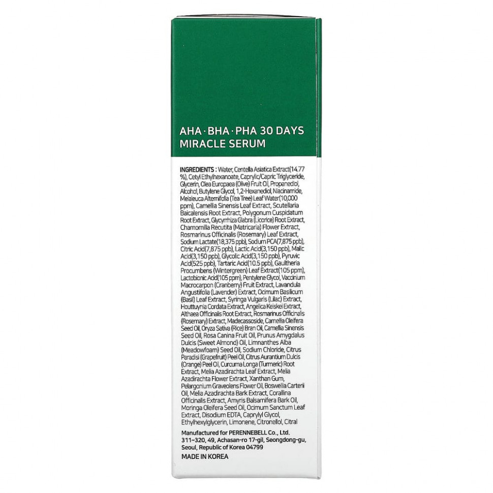 Оказывает успокаивающее воздействие на кожу за счет содержания 14,5% экстракта готу колы (Centella asiatica) и воды из листьев чайного дерево (Melaleuca alternifolia) в концентрации 10 000 част./млн. Компоненты из АГК, БГК и ПГК удаляют мертвые клетки, обновляя кожу и придавая ей гладкость.