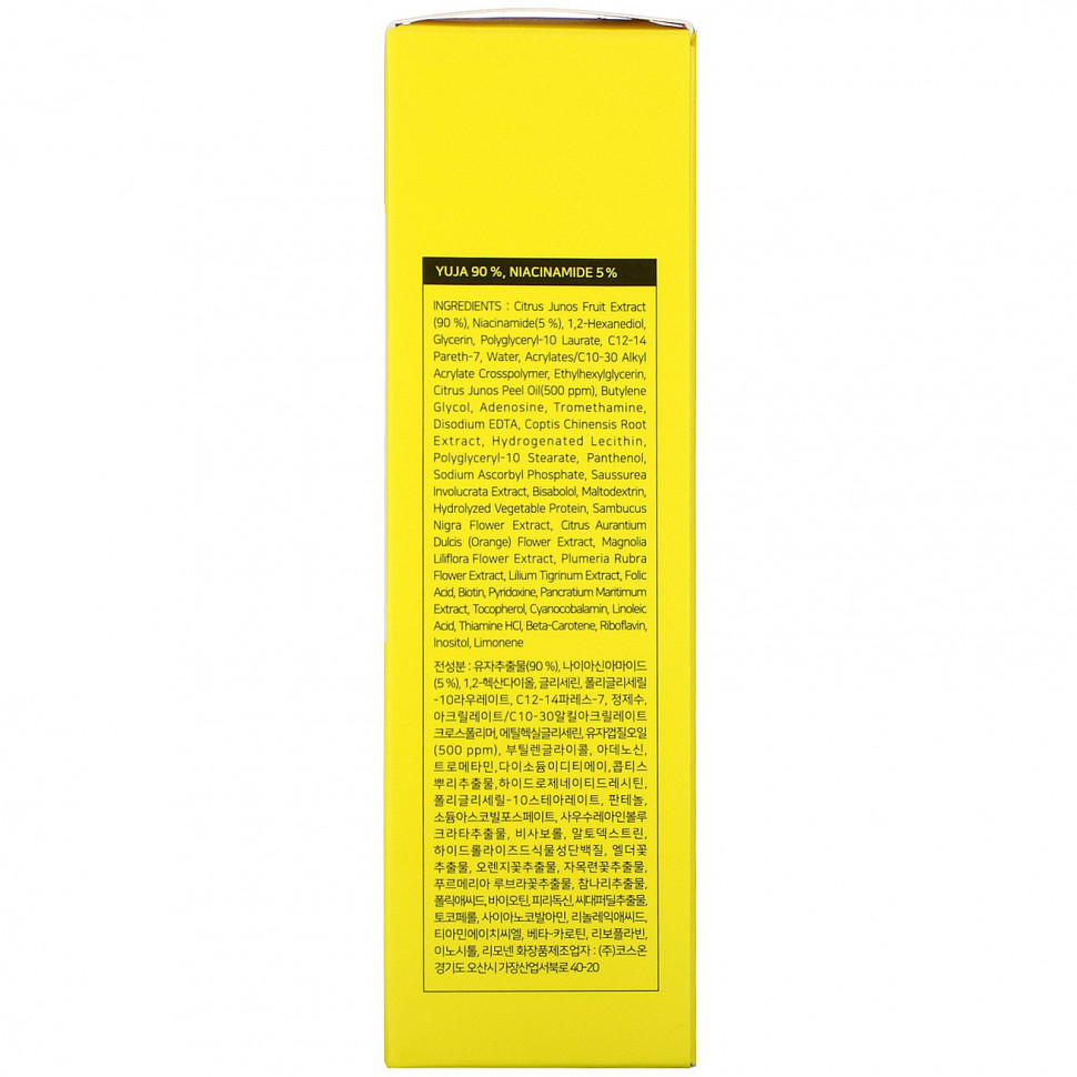 Юдзу, богатый влагой и питательными веществами, а также 12 видов витаминов придают жизненые силы шелушащейся коже. Кроме того, 5% ниацинамида, обладающего осветляющим действием, обеспечивают интенсивное осветление темных участков кожи, улучшая ее тон и придавая яркость и сияние коже лица.