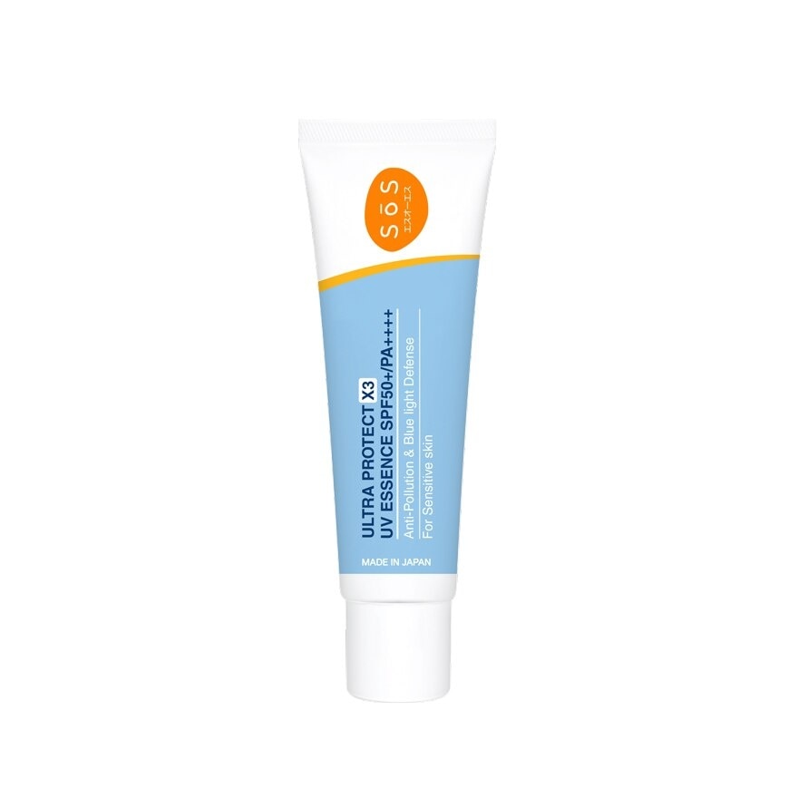 SōS Ultra Protect X3 UV ESSENCE SPF50+/PA++++Light Essence Sunscreen, with a unique hyaluronic formula combined with vitamin E that multiple protect the skin including UVA / UVB, and Blue Light. The sunscreen product acts like a very thin film to block UVA , UVB , and blue light. It’s well to trap dirt, heavy metals, smoke and small dust (PM 2.5) to not penetrate into the skin. Deep protection even you go indoor or outdoor and usable as makeup primer and comes off easier cleanse. Make you happy and enjoy city life more than ever with SōS Ultra Protect X3 UV ESSENCE SPF50+/PA++++ ! Hypoallergenic formula good for sensitive skin or babies* and children with no additive**, fragrance and colorant. How to use :