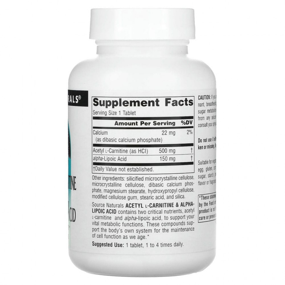 Ацетил-L-карнитин и альфа-липоевая кислота Source Naturals содержит два важнейших питательных вещества, ацетил-L-карнитин и альфа-липоевую кислоту, для поддержки жизненно важных метаболических функций. Эти соединения помогают системе организма поддерживать функции клеток по мере старения.