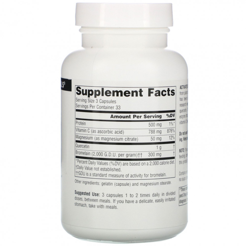 Активированный кверцетин — это уникальный биофлавоноид, получаемый из растительных источников. В исследованиях культуры клеток человека было показано, что кверцетин ингибирует высвобождение гистамина. Должны быть проведены дополнительные исследования, чтобы подтвердить влияние кверцетина на людей, если таковое имеется. Бромелаин — фермент из ананаса, который может помочь организму в периоды стресса, в то время как витамин С поддерживает иммунную систему.