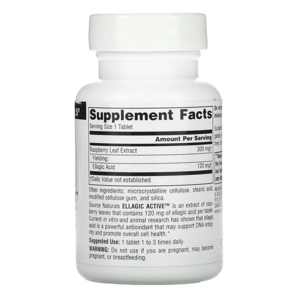 Source Naturals ELLAGIC ACTIVE ™ — это экстракт листьев малины, который содержит 120 мг эллаговой кислоты в одной таблетке. Текущие исследования in vitro и на животных показали, что эллаговая кислота является мощным антиоксидантом, который может поддерживать целостность ДНК и способствовать общему здоровью клеток.