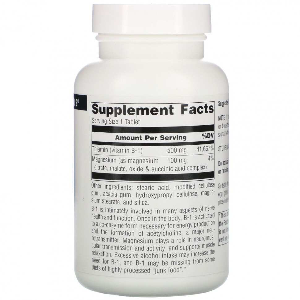 B1 принимает непосредственное участие во многих аспектах здоровья и функционирования нервной системы. Активная коферментная форма B-1, тиаминопирофосфат (ТПФ), необходима для выработки энергии и образования ацетилхолина, основного нейромедиатора. Магний важен для нейромышечной передачи и активности, обеспечивая мышечную релаксацию. Сильно обработанная «нездоровая пища», большое употребление алкоголя и выматывающие физические нагрузки увеличивают потребность в B-1.