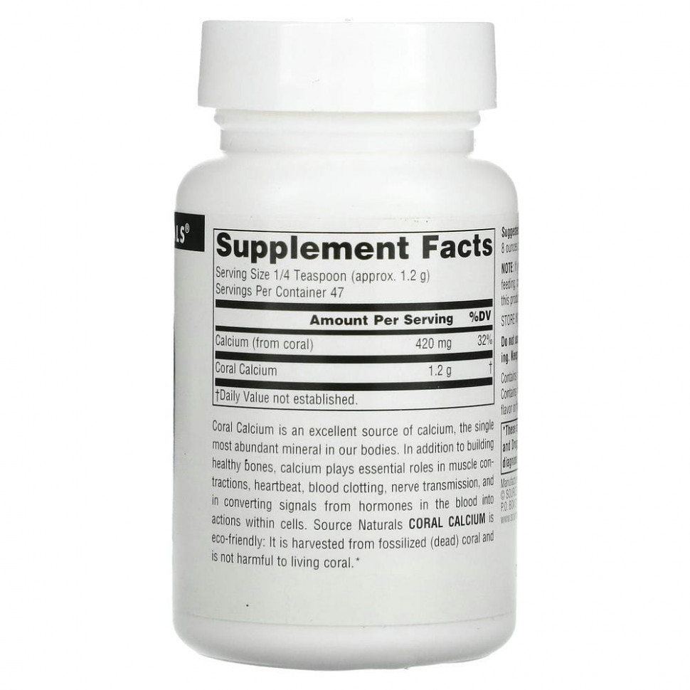 Коралловый кальций — превосходный источник кальция, самого распространенного микроэлемента в нашем организме. Помимо формирования здоровых костей, кальций играет важную роль в сокращении мышц, сердцебиении, свертывании крови, передаче нервных импульсом и в преобразовании сигналов гормонов в крови в действия внутри клеток. Коралловый кальций от Source Naturals — экологичный продукт. Его получают из окаменелых (мертвых) кораллов без нанесения вреда живым кораллам.