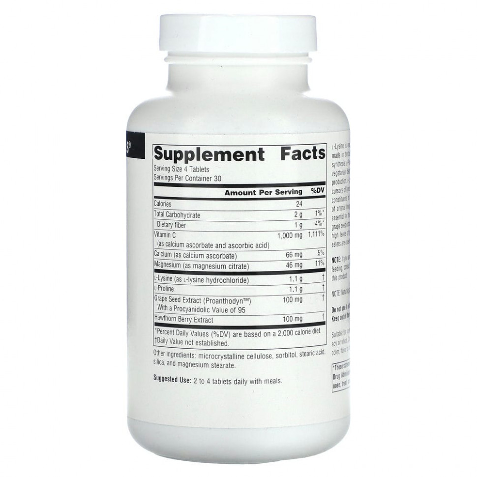 L-лизин — одна из 9 незаменимых аминокислот, которые не вырабатываются в организме. Это основное сырье для синтеза карнитина. L-пролин может вырабатываться в организме, но низкобелковые и вегетарианские диеты не всегда способствуют оптимальной выработке L-пролина. Аминокислоты L-лизин и L-пролин являются прекурсорами гидроксилизина (HL) и гидроксипролина (HP), двух составляющих коллагена. Коллаген является важным компонентом оболочки артерий. Витамин C, являющийся сильным антиоксидантом, также необходим для выработки коллагена. Экстракт ягод боярышника и виноградных косточек является действенным природным антиоксидантам благодаря высокому содержанию проантоцианидина. Сложные эфиры проантоцианидина отлично поглощают свободные радикалы.