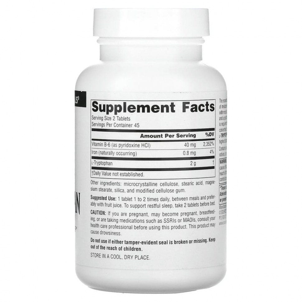 Незаменимая аминокислота L-триптофан предшествует синтезу мелатонина и серотонина — гормоны и нейромедиаторы, влияющие на настроение и реакцию на стресс. Спсособствует релаксации, спокойному сну и позитивному мышлению. Данная таблетки триптофана содержат витамин B-6, необходимый для превращения триптофана в серотонин. При необходимости L-триптофан преобразуется в организме в ниацин — один из витаминов B. L-триптофан из натуральных источников является чрезвычайно чистым препаратом и регулярно проверяется на соответствие высочайшим стандартам качества.