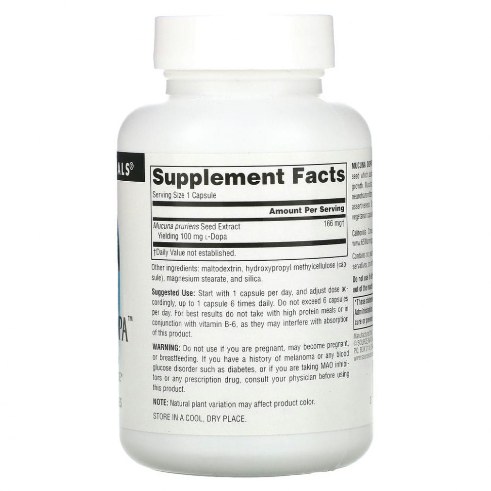 В Mucuna Dopa™ содержится мощный экстракт семян Mucuna pruriens, который способствует эффективной работе мозга, либидо и поддерживает рост мышц. Mucuna pruriens содержит высокие концентрации L-дигидроксифенилаланина — нейромедиатора, который способствует положительному психическому состоянию активности и напористости. Mucuna Dopa от Source Naturals выпускается в вегетарианских капсулах по 100 мг.