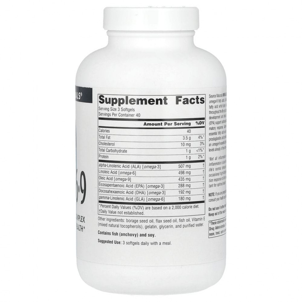 Source Naturals Omega-3, 6, 9 — это высококачественная смесь жирных кислот омега-3, омега-6 и омега-9. Докозагексаеновая кислота (ДГК) представляет собой жирную кислоту омега-3, которая играет важную роль в развитии мозга на протяжении всего жизненного цикла, особенно в решающий период развития плода и младенчества. ДГК и ЭПК (эйкозапентаеновая кислота) поддерживают здоровье сердечно-сосудистой системы и здоровую воспалительную реакцию организма?. Гамма-линоленовая кислота (ГЛК) — это незаменимая жирная кислота омега-6, используемая нашими клетками для производства успокаивающих простагландинов PGE-1. Олеиновая кислота — это незаменимая жирная кислота омега-9, которая помогает поддерживать уже нормальный уровень артериального давления в пределах нормы.