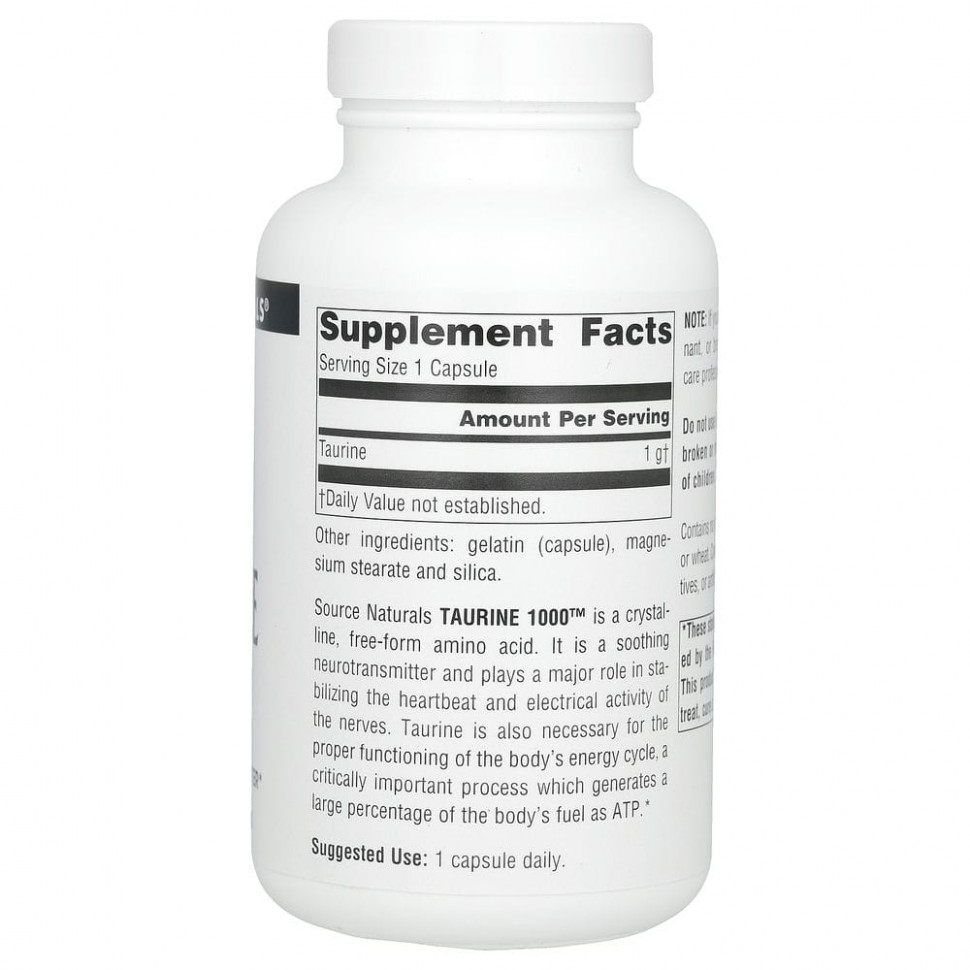 Source Natural Taurine 1000 — это кристаллическая аминокислота свободной формы. Это успокаивающий нейротрансмиттер, который играет важную роль в стабилизации сердцебиения и электрической активности нервов. Таурин также необходим для надлежащего функционирования энергетического цикла организма, важнейшего процесса, который генерирует большое количество АТФ.