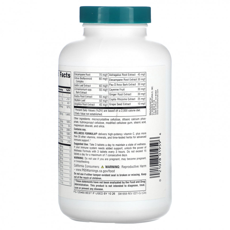 Wellness Formula® содержит высокоэффективный витамин С, а также более 30 других витаминов, минералов и проверенных временем трав для усиленной поддержки иммунитета.