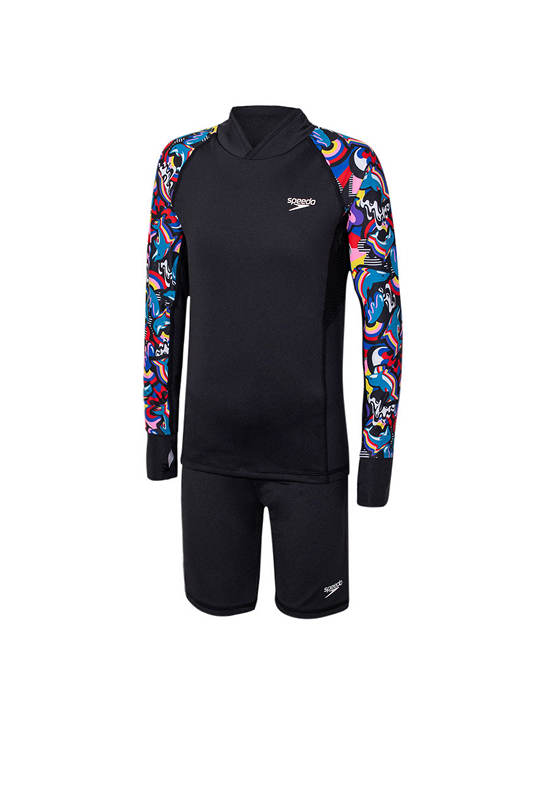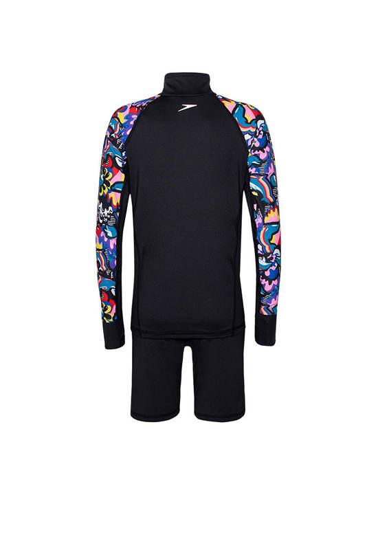 SPEEDO Deluxe Girls Rashguard features a colourful fabric that little ones are bound to love. It includes UV protective fabric of UPF40+ for sun protection in and out of the water. Soft and stretchy, our fabric provides higher chlorine resistance than standard swimwear fabrics.