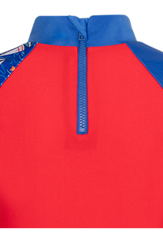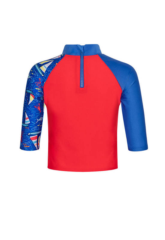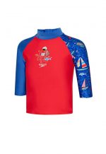 Bring the magic of the ocean to life with our Water Explorers range. This SPEEDO Digital Long Sleeve Boys Rushguard includes an asymmetric sleeve design with a nautical-themed sailboat print. Perfect for sunny holidays and outdoor fun, the top includes UPF40+ fabric sun protection to keep little ones protected in and out of the water. A zip back allows for easy wet-and-dry changing. Designed for all their water adventures, our EnduraBrite fabric offers higher chlorine resistance than standard swimwear fabrics, delivers superb colour performance and fits like new for longer with CREORA® HighClo™