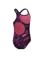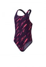 Paying homage to our legacy graphics, this sporty SPEEDO HyperBoom Allover Medalist Girls Swimsuit showcases an evolutionary HyperBoom graphic in stylish shades of pink and navy. Ideal for regular pool sessions, the medalist design aids shoulder movement and flexibility so young swimmers can cruise through their swim without feeling held back. The suit is also fully lined at the front for comfort and modesty during their swim. Our EnduraFlex fabric offers higher chlorine resistance than standard swimwear fabrics and fits like new for longer with CREORA® HighClo™. In addition, nylon yarns in the EnduraFlex fabric are made from 100% pre-consumer waste, such as waste fabric from factories.