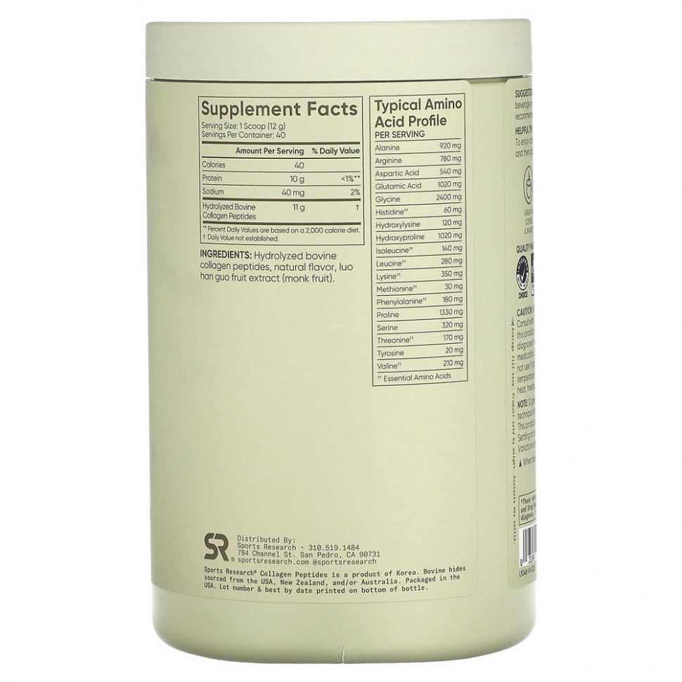 Пептиды из гидролизованного коллагена от SR™ имеют низкий молекулярный вес и помогают поддерживать функциональность, эластичность, способность к регенерации и прочность соединительных тканей тела, включая кожу, кости, хрящи, сухожилия и связки.