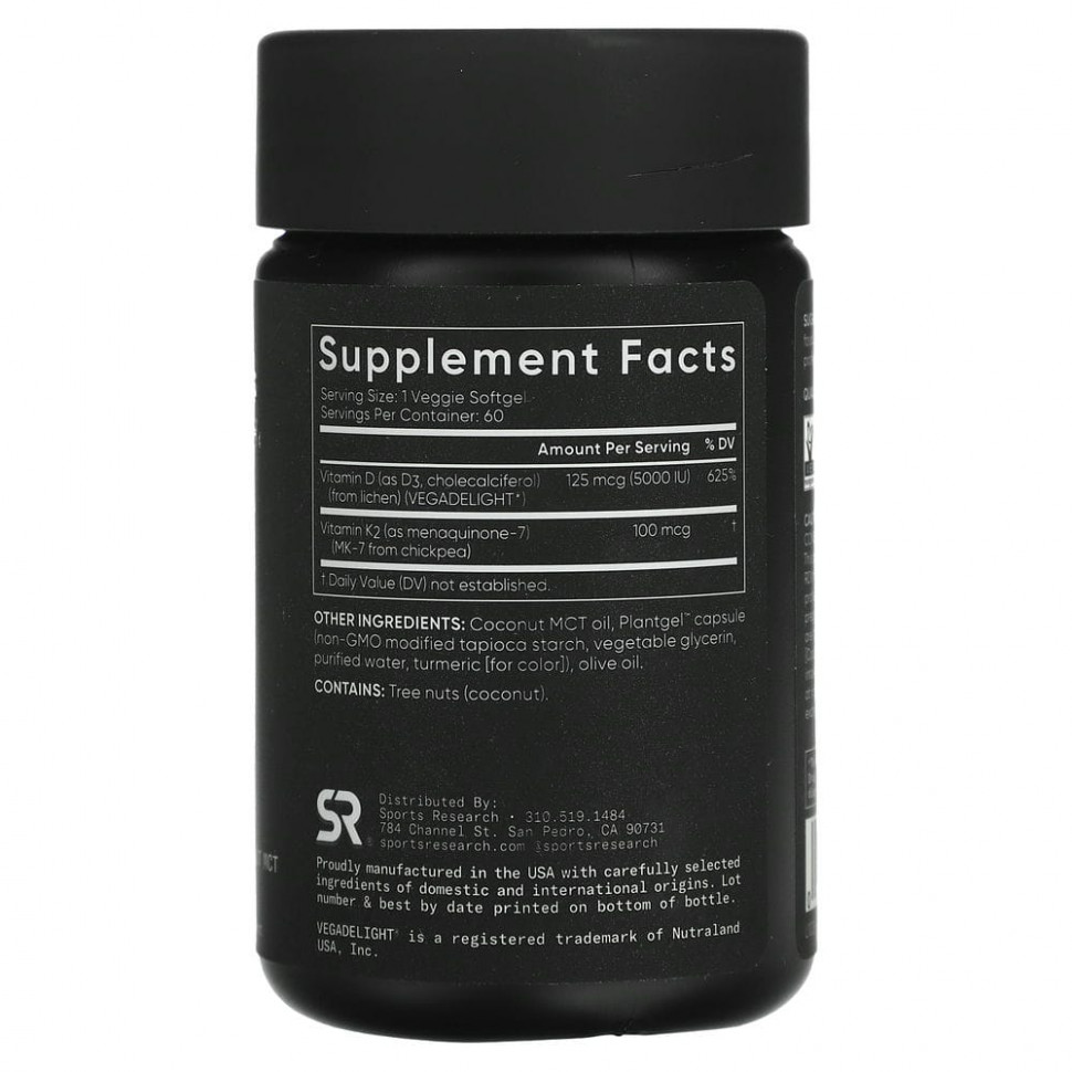Витамины D3 и K2 от SR™ объединяют в себе веганский витамин D3 VegaDELight™ (в виде холекальциферола из лишайника) и витамин K2 MenaQ7® (в виде менахинона-7 из нута), а также кокосовое масло холодного отжима Vegan Certified PlantGel™.