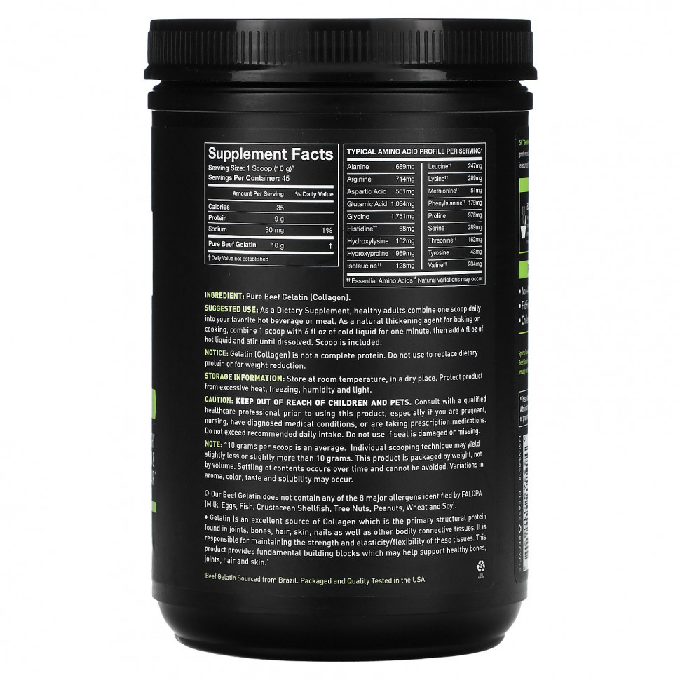 ? Наш говяжий желатин не содержит ни одного из 8 основных аллергенов, идентифицированных FALCPA (молоко, яйца, рыба, ракообразные, моллюски, орехи, арахис, пшеница и соя).